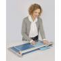 Rulleskæremaskine: Med automatisk presseskinne og selvslibende rundkniv Skærehjulet er indkaplset i lukket skærehoved, hvorved der opnåes maksimal sikkerhed. Papiret fastholdes automatisk under skæring. Med centimeter- og tommeinddelt vinkelret anlægskant i begge sider samt justerbar bagstyr i én side. Kan monteres på væg. Anlægsbord Ydermål: 655x360mm Skærelængde: 510mm Skærekapacitet: 2mm Vægt: 3,6kg