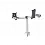 Beskrivelse af Skærmholder pro til 1 skærm og 1 tabletholder, bordbeslag Skærmholder til arbejde på tværs af enheder på skærm og tablet. Fastgørelse med bordbeslag