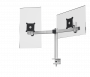 Beskrivelse af Skærmholder pro til 2 skærme, bordbeslag Skærmholder til 2 skærme med justerbar højde, rotation og hældning. Fastgørelse med bordbeslag