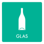 Skilt affaldspiktogram GLAS 12x12 cm, aluminium, turkis/hvid