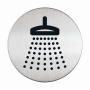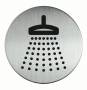 Rund skilt Brusebad Symbolskilt af børstet rustfrit stål, der er ridsefri. Selvklæbende puder medfølger. Ø 83 mm