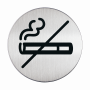 Rund skilt Rygning forbudt Symbolskilt af børstet rustfrit stål, der er ridsefri. Selvklæbende puder medfølger. Ø 83 mm