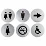 Vejled dine kunder i den rigtige retning med Securit® skilte i rustfrit stål. Disse selvklæbende skilte bruges i vid udstrækning i indkøbscentre, kontorlokaler, caféer, barer og restauranter. Sæt med seks forskellige tegn: Pil, Rygning Forbudt, Dame- Herre- Unisex- og Handicap-toilet. Alle tegn er klare og lette at forstå. Hvert skilt leveres med en selvklæbende monteringsstrimmel på bagsiden og kan placeres på vægge, døre og andre overflader.