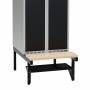 Skohylde for bænkstel og høj benramme til garderobeskabe. Passer til B= 600 mm. Skohylden har en dybde på 230 mm. Lakeret i RAL 9005, sort. Montering klares enkelt i forborede huller.