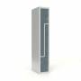 Skoleskab, helsvejst 1x300 med lige tag. Z-døre. Lys grå kabinet (RAL 7035) med laminatdør VirrVarr Black (F6945). Leveres med færdigmonteret cylinderlås ASSA 8450 H. Indretningen består af to hylder, en garderobestang med to ankerkroge pr. rum. Totalmål (b x d x h) 300 x 550 x 1750 mm. FSC Certificeret materiale.