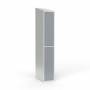 Skoleskab, helsvejst 1x300 med skråt tag. 2 rum i højden. Lys grå kabinet (RAL 7035) med pulverlakeret ståldør grå (RAL 7040). Leveres med færdigmonteret greb for hængelås ASSA 3906. Totalmål (b x d x h) 300 x 550 x 1900 mm.
