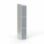 Skoleskab, helsvejst 1x300 med skråt tag. 3 rum i højden. Lys grå kabinet (RAL 7035) med pulverlakeret ståldør grå (RAL 7040). Leveres med færdigmonteret greb for hængelås ASSA 3906. Totalmål (b x d x h) 300 x 550 x 1900 mm.