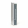 Skoleskab, helsvejst 1x300 med skråt tag. Z-døre. Lys grå kabinet (RAL 7035) med laminatdør VirrVarr Black (F6945). Leveres med færdigmonteret cylinderlås ASSA 8450 H. Indretningen består af to hylder, en garderobestang med to ankerkroge pr. rum. Totalmål (b x d x h) 300 x 550 x 1900 mm. FSC Certificeret materiale.