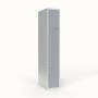 Skoleskab, helsvejst 1x400 med lige tag. Z-døre. Lys grå kabinet (RAL 7035) med pulverlakeret ståldør grå (RAL 7040). Leveres med færdigmonteret greb for hængelås ASSA 3906. Indretningen består af to hylder, en garderobestang med to ankerkroge pr. rum. Totalmål (b x d x h) 400 x 550 x 1750 mm