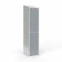 Skoleskab, helsvejst 1x400 med skråt tag. 2 rum i højden. Lys grå kabinet (RAL 7035) med pulverlakeret ståldør grå (RAL 7040). Leveres med færdigmonteret cylinderlås ASSA 8450 H. Totalmål (b x d x h) 400 x 550 x 1900 mm.