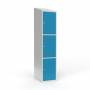 Skoleskab 1x400 Skråt tag 3 rum i højden Lys blå ståldør Cylinderlås