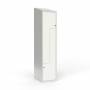Skoleskab, helsvejst 1x400 med skråt tag. Z-døre. Lys grå kabinet (RAL 7035) med pulverlakeret ståldør hvid (RAL 9003). Leveres med færdigmonteret greb for hængelås ASSA 3906. Indretningen består af to hylder, en garderobestang med to ankerkroge pr. rum. Totalmål (b x d x h) 400 x 550 x 1900 mm