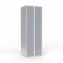 Skoleskab, helsvejst 2x300 med lige tag. 1 rum i højden. Lys grå kabinet (RAL 7035) med pulverlakeret ståldør grå (RAL 7040). Leveres med færdigmonteret greb for hængelås ASSA 3906. Totalmål (b x d x h) 600 x 550 x 1750 mm.