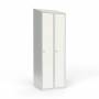Skoleskab, helsvejst 2x300 med skråt tag. 1 rum i højden. Lys grå kabinet (RAL 7035) med pulverlakeret ståldør hvid (RAL 9003). Leveres med færdigmonteret greb for hængelås ASSA 3906. Totalmål (b x d x h) 600 x 550 x 1900 mm.