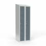 Skoleskab, helsvejst 2x300 med skråt tag. 1 rum i højden. Lys grå kabinet (RAL 7035) med laminatdør VirrVarr Black (F6945). Leveres med færdigmonteret cylinderlås ASSA 8450 H. Totalmål (b x d x h) 600 x 550 x 1900 mm. FSC Certificeret materiale.