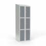 Skoleskab 2x300 Skråt tag 3 rum i højden Lys grå laminatdør Greb for hængelås