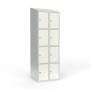 Beskrivelse af Skoleskab 2x300 Skråt tag 4 rum i højden Hvid ståldør Greb for hængelås