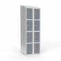 Beskrivelse af Skoleskab 2x300 Skråt tag 4 rum i højden Lys grå laminatdør Cylinderlås