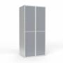 Skoleskab, helsvejst 2x400 med lige tag. 2 rum i højden. Lys grå kabinet (RAL 7035) med pulverlakeret ståldør grå (RAL 7040). Leveres med færdigmonteret cylinderlås ASSA 8450 H. Totalmål (b x d x h) 800 x 550 x 1750 mm.