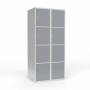 Skoleskab, helsvejst 2x400 med lige tag. 4 rum i højden. Lys grå kabinet (RAL 7035) med pulverlakeret ståldør grå (RAL 7040). Leveres med færdigmonteret cylinderlås ASSA 8450 H. Totalmål (b x d x h) 800 x 550 x 1750 mm.