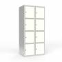Beskrivelse af Skoleskab 2x400 Lige tag 4 rum i højden Hvid laminatdør Greb for hængelås
