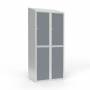 Beskrivelse af Skoleskab 2x400 Skråt tag 2 rum i højden Lys grå laminatdør Greb for hængelås