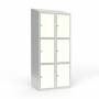 Beskrivelse af Skoleskab 2x400 Skråt tag 3 rum i højden Hvid laminatdør Greb for hængelås
