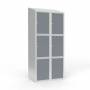 Beskrivelse af Skoleskab 2x400 Skråt tag 3 rum i højden Lys grå laminatdør Greb for hængelås