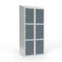 Skoleskab, helsvejst 2x400 med skråt tag. 3 rum i højden. Lys grå kabinet (RAL 7035) med laminatdør VirrVarr Black (F6945). Klinka ASSA A3906 Totalmål (b x d x h) 800 x 550 x 1900 mm. FSC Certificeret materiale.