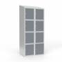 Beskrivelse af Skoleskab 2x400 Skråt tag 4 rum i højden Lys grå laminatdør Cylinderlås
