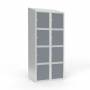 Beskrivelse af Skoleskab 2x400 Skråt tag 4 rum i højden Lys grå laminatdør Greb for hængelås