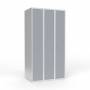 Skoleskab, helsvejst 3x300 med lige tag. 1 rum i højden. Lys grå kabinet (RAL 7035) med pulverlakeret ståldør grå (RAL 7040). Leveres med færdigmonteret greb for hængelås ASSA 3906. Totalmål (b x d x h) 900 x 550 x 1750 mm.