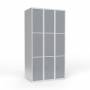 Skoleskab, helsvejst 3x300 med lige tag. 3 rum i højden. Lys grå kabinet (RAL 7035) med pulverlakeret ståldør grå (RAL 7040). Leveres med færdigmonteret greb for hængelås ASSA 3906. Totalmål (b x d x h) 900 x 550 x 1750 mm.