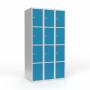 Beskrivelse af Skoleskab 3x300 Lige tag 4 rum i højden Lys blå ståldør Greb for hængelås
