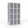 Beskrivelse af Skoleskab 3x300 Lige tag 4 rum i højden Lys grå laminatdør Greb for hængelås