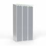 Skoleskab, helsvejst 3x300 med skråt tag. 1 rum i højden. Lys grå kabinet (RAL 7035) med pulverlakeret ståldør grå (RAL 7040). Leveres med færdigmonteret greb for hængelås ASSA 3906. Totalmål (b x d x h) 900 x 550 x 1900 mm.