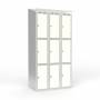 Skoleskab 3x300 Skråt tag 3 rum i højden Hvid laminatdør Greb for hængelås