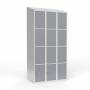Skoleskab, helsvejst 3x300 med skråt tag. 4 rum i højden. Lys grå kabinet (RAL 7035) med pulverlakeret ståldør grå (RAL 7040). Leveres med færdigmonteret greb for hængelås ASSA 3906. Totalmål (b x d x h) 900 x 550 x 1900 mm.