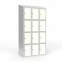 Beskrivelse af Skoleskab 3x300 Skråt tag 4 rum i højden Hvid laminatdør Greb for hængelås