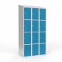 Beskrivelse af Skoleskab 3x300 Skråt tag 4 rum i højden Lys blå ståldør Greb for hængelås