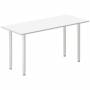 DNA skrivebord med 1400 x 600 mm bordplade i hvid laminat.I DNA-kontormøbelserien finder du standardborde med alugrå I-ben og manuel justering af arbejdshøjde (650 - 800 mm). Skrivebordet har 25 mm laminatbordplade for god stabilitet.
