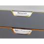 Attraktiv og innovativ skuffeboks med fem farvekodede skuffer fremstillet af højeste kvalitet. Skufferne i forskellige farver gør det nemt at organisere sine dokumenter. Skufferne er forsynet med udtræksstop, og er nemme at åbne og lukke. Passer til format op til A4, C4 Folio og kuvertstørrelse. Skuffeboksen leveres med transparente etiketholdere til opmærkning. Udskriftsvenlige etiketter som er nemme at udskifte, medfølger. Stablebar med skridsikre gummifødder på undersiden. Passer ind i alle almindelige kontorskabe samt skriveborde. Mål: 292x280x356mm (BxHxD).