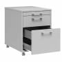Skuffesektion i kontormøbelserien DNA, med 3 skuffer og med udvendig bredde x dybde x højde, 458 x 580 x 595 mm. Skuffesektionen har lys grå kabinetfarve i kombination med lys grå skuffefronter.