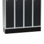 Sokkel for garderobeskab med bredde 1200 mm og dybde 400 mm. Soklen giver en pæn afslutning mod gulvet, letter adgangen til skabet og har en højde på 150 mm, som lægges til garderobeskabets højde. Leveres som standard pulverlakeret i sort RAL 9005.
