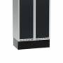 Sokkel for garderobeskab med bredde 600 mm og dybde 400 mm. Soklen giver en pæn afslutning mod gulvet, letter adgangen til skabet og har en højde på 150 mm, som lægges til garderobeskabets højde. Leveres som standard pulverlakeret i sort RAL 9005.