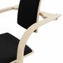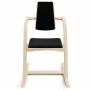 Stolens gyngefunktion gør det muligt at følge dine bevægelser når du bevæger dig forover, eller når du læner dig bagkover for at slappe af. Når du læner dig forover, finder kroppen sit eget balanscpunkt hvor rygmuskulaturen fungerer på korrekt måde og spændinger i nakke og skuldre undgås. Stolen er testet og godkendt til vægt op til 110 kilo. Denne stol leveres med natur understel og sort tekstil SoftTape Varier 1, selvklæbende gulvbeskyttelse følger med
