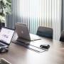 Bi-Box, her i stor udgave, er kabelboks og kabelskjuler i ét. Låget kan let åbnes til to sider og har softclosing funktion. Bi-Boxen leveres i sort, har størrelse 118 x 605 x 150 mm og kan med fordel kombineres med et el-panel tilpasset dit behov. .