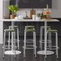 Taburet Bertil 117 med rundt sæde i diameter 330 mm i massiv birk eller krydsfiner belagt med birkelaminat. Stel i lakeret stål med fodring. Fødder leveres med plastik gulvbeskyttelse.