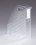 Tidsskriftholder med fingerhul som gør det nemt at trække den ud af hylden og "greb" som gør det nemt at bære tidsskriftholderen. Unik etiketholder gør det enkelt at udskifte etiketten. Mål 74x305x244mm (BxHxD)