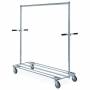 Tøjstativ med ekstra kraftig ramme og store hjul, som gør, at disse tøjstativer kan køres udendørs. For 1 højde. Firkantet profil 25x25 mm rør og garderobestang 20x40 mm oval.